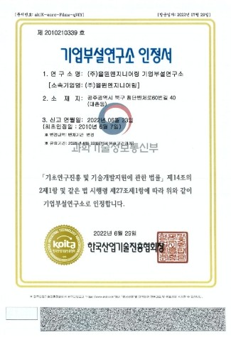 기업부설연구소 인정서